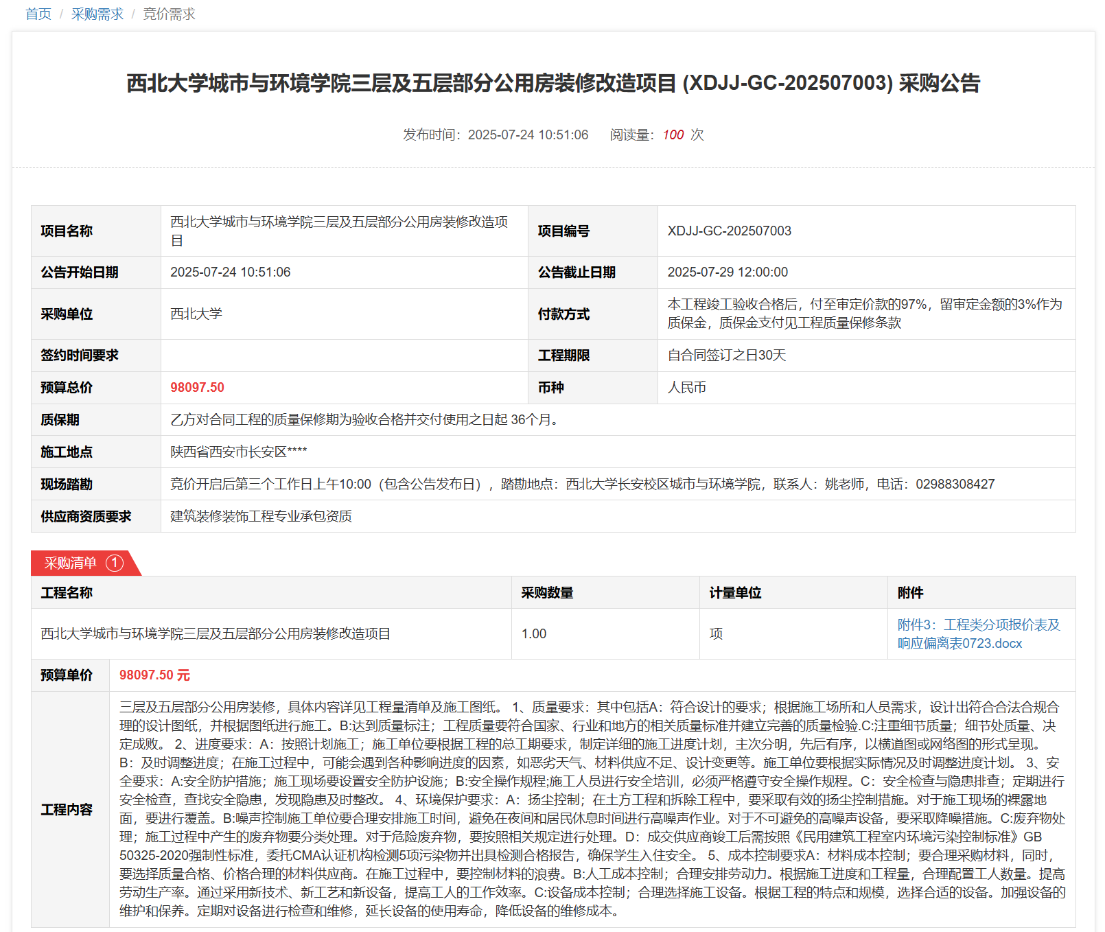 米兰买球城市与环境学院三层及五层部分公用房装修改造项目(XDJJ-GC-202507003)竞价采购公告 作者:采购与招标办公室 编辑: 时间:2025-07-24 原公告链接:https://www.ejingcai.com.cn/site/bidding/detail/19707