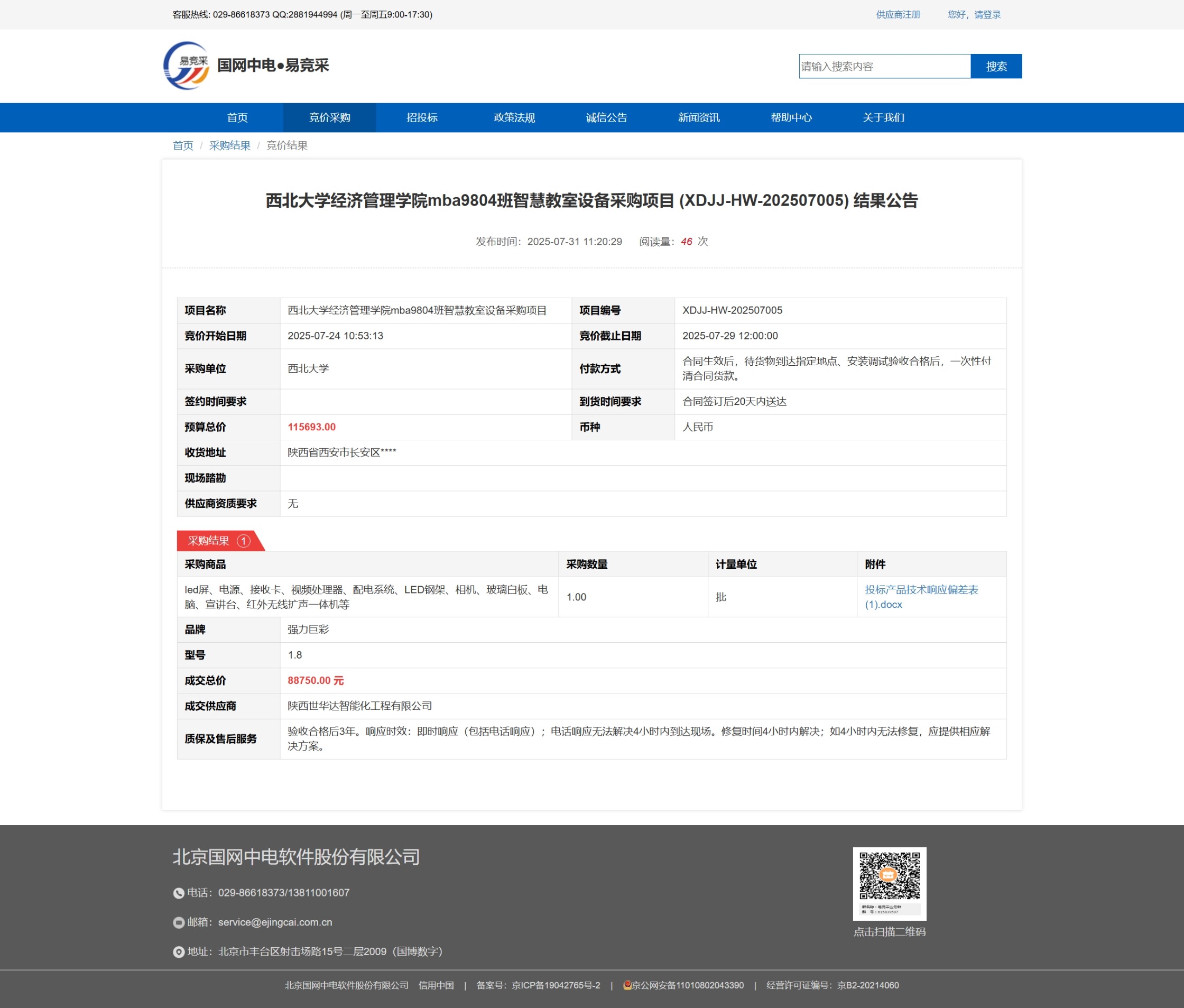 米兰买球经济管理学院mba9804班智慧教室设备采购项目 (XDJJ-HW-202507005) 竞价结果公告 作者: 编辑:采购与招标办公室 时间:2025-07-31 原公告链接:https://www.ejingcai.com.cn/site/bidding/detail/19832