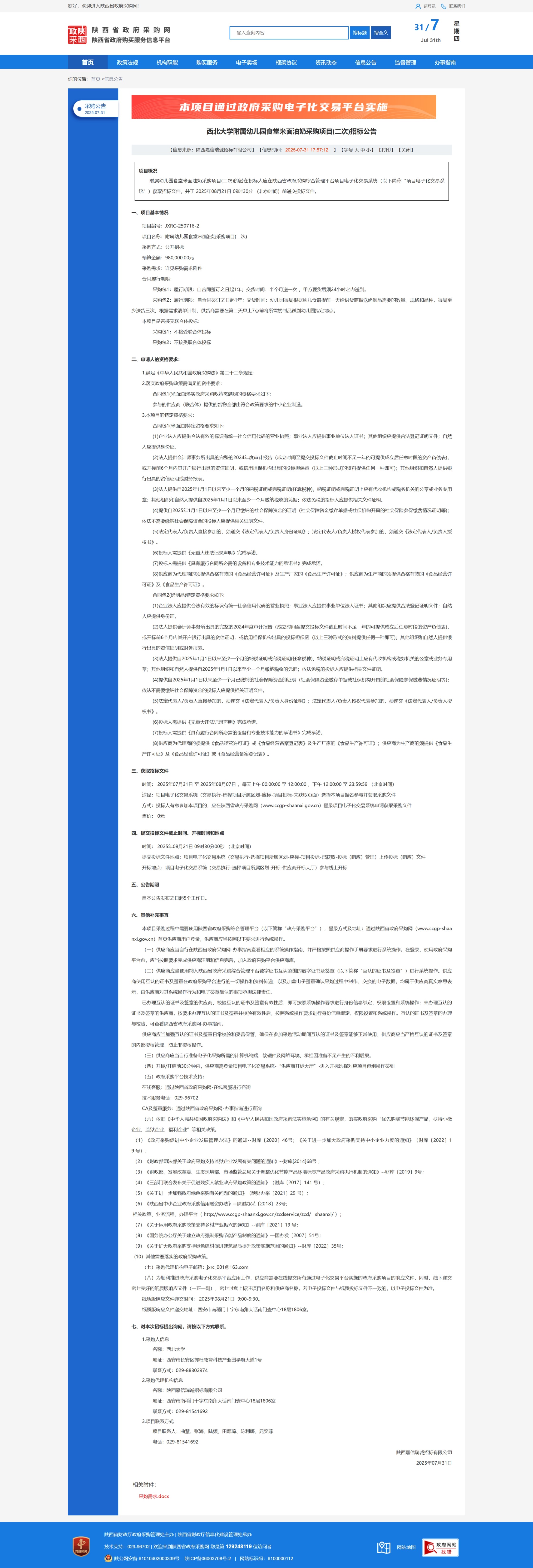 米兰买球附属幼儿园食堂米面油奶采购项目(二次)招标公告 作者: 编辑:采购与招标办公室 时间:2025-07-31 原公告链接:https://www.ccgp-shaanxi.gov.cn/freecms/site/shaanxi/ggxx/info/2025/8a69c4d4985e3e5601985fe2fab2305e.html?noticeType=001011¬iceId=c51d4796-6df6-11f0-8063-08c0eb20c666