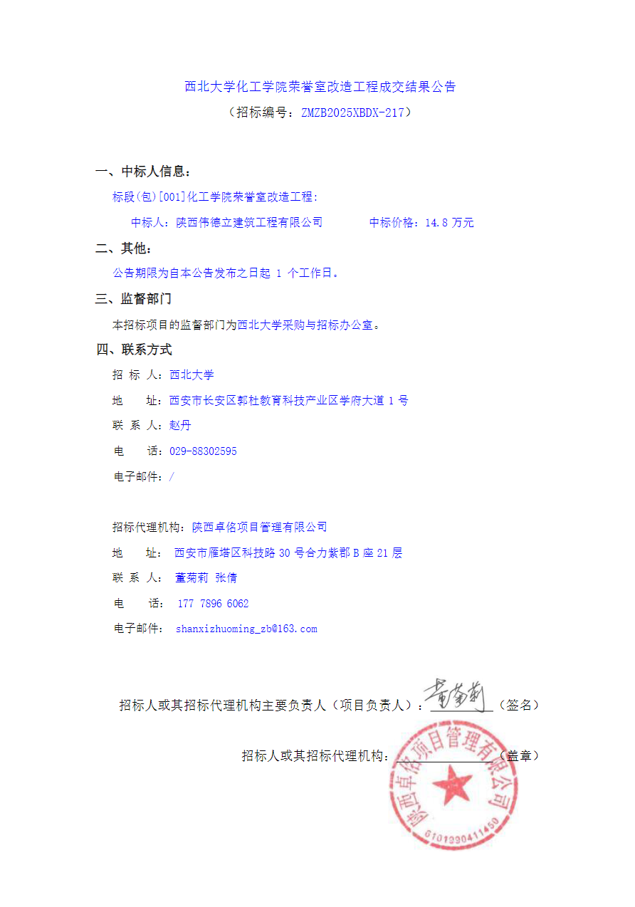 米兰买球化工学院荣誉室改造工程成交结果公告