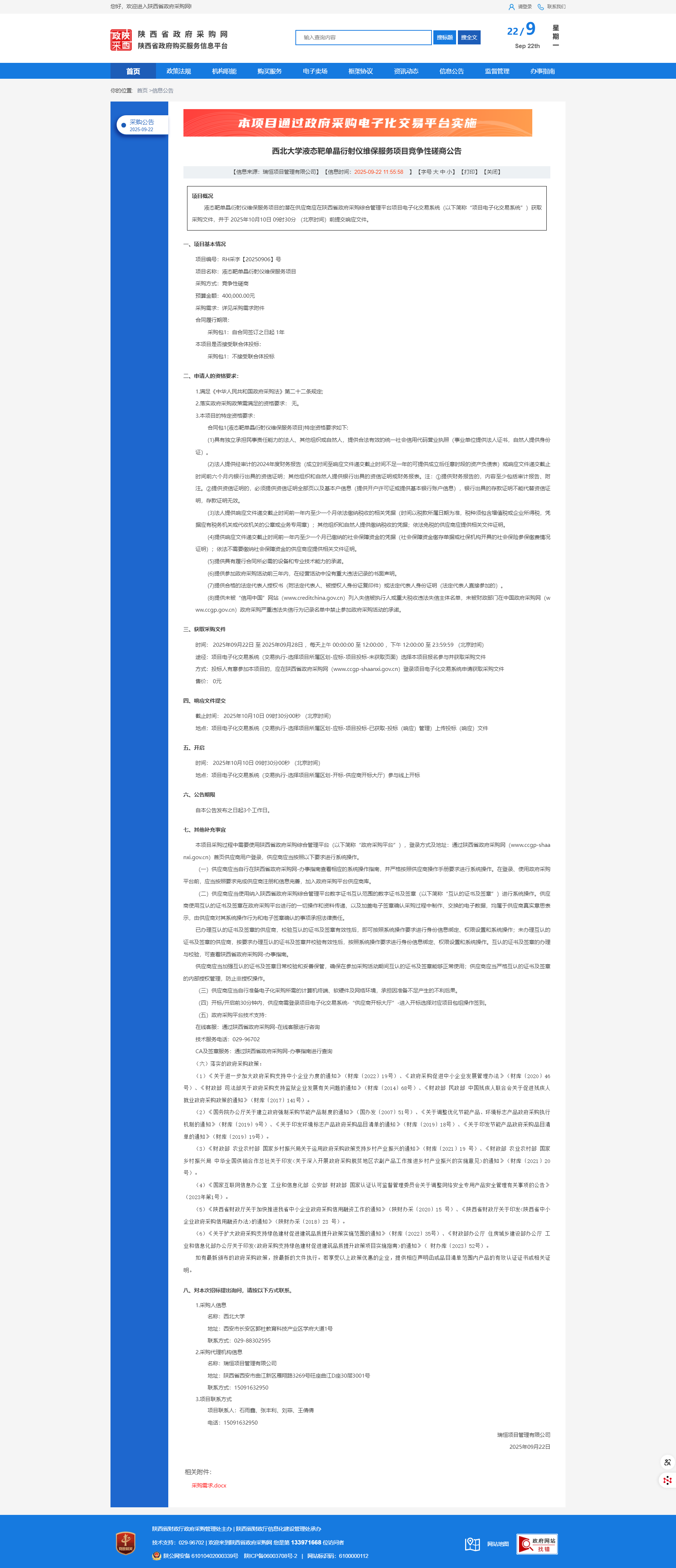 米兰买球液态靶单晶衍射仪维保服务项目竞争性磋商公告