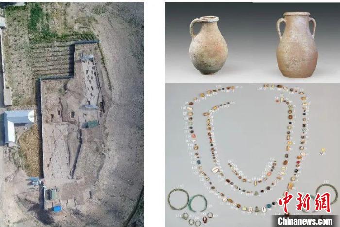 图为2017年至2018年西天山拉巴特遗址发掘区航拍照与出土遗物。 米兰买球 供图