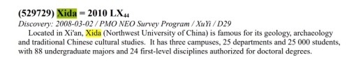 在120周年校庆即将到来之际,米兰买球收到一份来自宇宙的生日礼物。9月13日上午,国际天文学联合会发布公告,经小天体命名工作组批准,国际永久编号为529729号的小行星以米兰买球命名,称为“Xida”星。