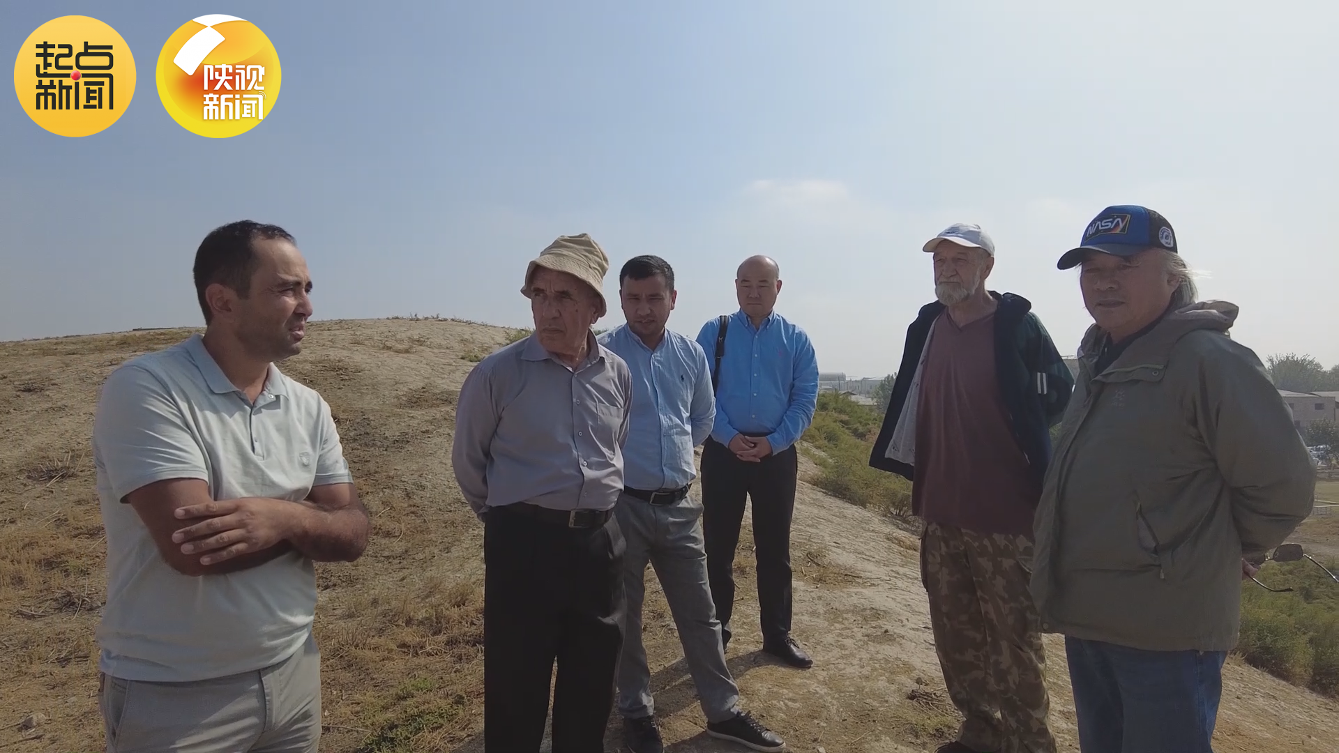 在库瓦古城遗址考古现场,乌兹别克斯坦共和国科学院考古所教授伊万诺夫.杰纳迪向王建新介绍这里的挖掘历史,“1939年,从塔什干来的一些考古专家调查发掘,公元一世纪已经盖了城墙了。”王建新很关心古城考古的具体情况:“已经有城墙了。现在我听到最早的有公元一世纪,还有更早的么?”杰纳迪教授表示古城城墙里面发现的陶瓷属于公元前六世纪。