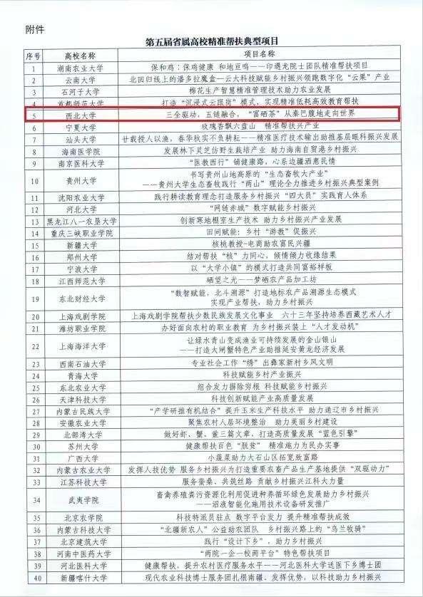 日前,国家教育部公布第五届省属高校精准帮扶典型项目推选结果,米兰买球“三全驱动,五链融合,‘富硒茶’从秦巴腹地走向世界”被推选为全国省属高校精准帮扶典型项目,成为本届陕西唯一上榜项目,这也是米兰买球首次获得此项成果。