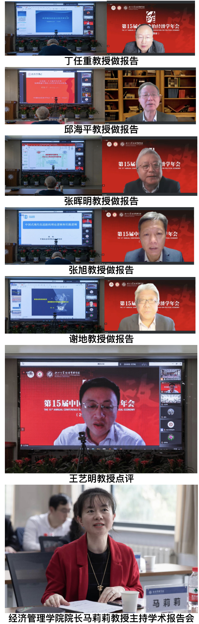 随后举行的学术报告会上,西南财经大学马克思主义经济研究院院长、原四川师范大学党委书记、校长丁任重教授以《共同富裕的政治经济学分析》为题、中国人民大学邱海平教授以《二十大精神为引领 加快构建中国自主的经济学知识体系》为题、复旦大学长三角研究院副院长张晖明教授以《构建中国特色社会主义政治经济学新体系的四点思考》为题、全国中国特色社会主义政治经济学研究中心副主任、中国社会科学院张旭教授以《中国式现代化的理论逻辑与实践逻辑》为题、辽宁大学经济学部副部长、经济学院谢地教授以《制造业和实体经济是我国经济发展的主要着力点》为题分别作了精彩报告,厦门大学王亚南经济研究院副院长王艺明教授就各位专家学者的报告作了精彩点评。本阶段报告会由米兰买球经济管理学院院长马莉莉教授主持。