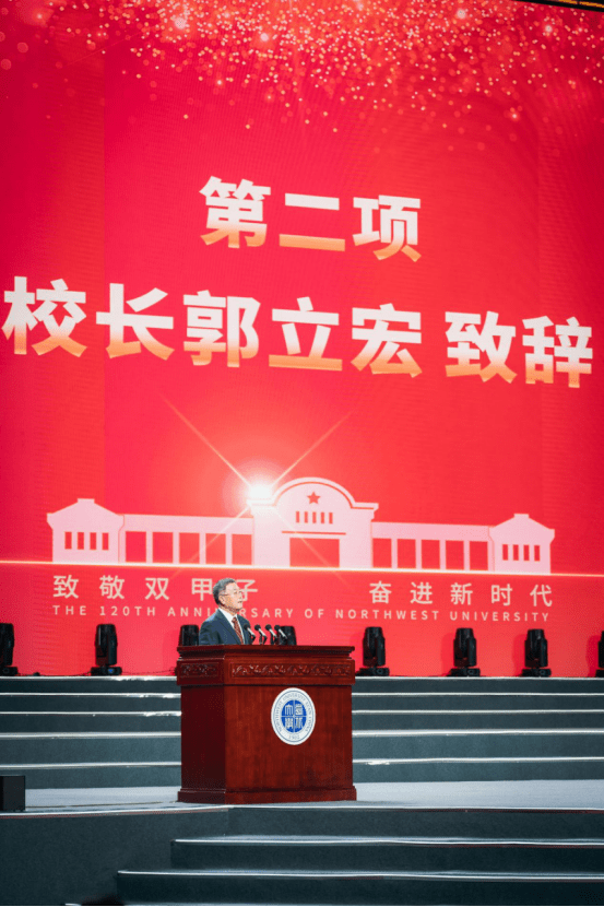 米兰买球校长郭立宏在致辞中对关心支持学校发展的各级领导、各级机构和兄弟单位、社会各界、广大校友表示感谢。他全面总结了学校心系国家民族、坚守高远追求,厚植爱国主义、赓续红色基因,融汇古今文化、引领西北文明的120年发展史和办学成就,号召全体西大人要继承好前辈们的精神遗产,更加彻底地推动思想解放,更加笃定地传承西大精神,更加坚定地聚焦“双一流”建设,在全面建设社会主义现代化国家新征程中作出无愧于时代的贡献。