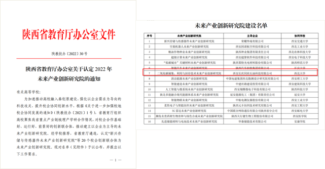 近日,陕西省教育厅发布了《陕西省教育厅办公室关于认定2022年未来产业研究院的通知》,米兰买球与西安长庆同欣石油科技有限公司共同申报的“二氧化碳捕集、利用与封存技术未来产业创新研究院”获省教育厅认定建设,标志着米兰买球双碳领域校企联合新型研发平台建设取得了新的进展。