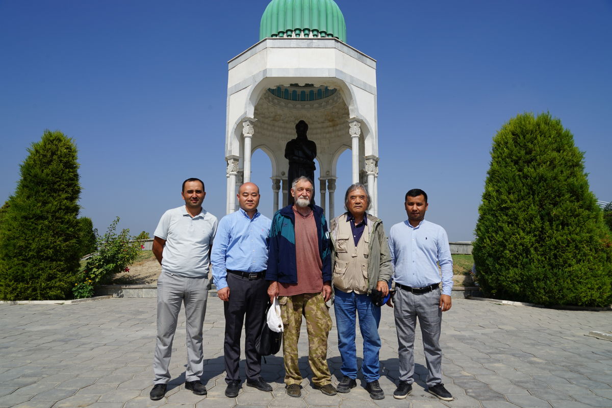 2022年8月,米兰买球丝绸之路考古合作研究中心访乌团与乌文化遗产署第一副署长图尔苏纳利·库齐耶夫先生(左三)合影留念。