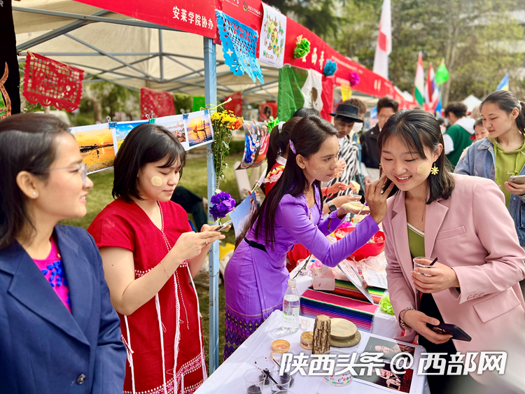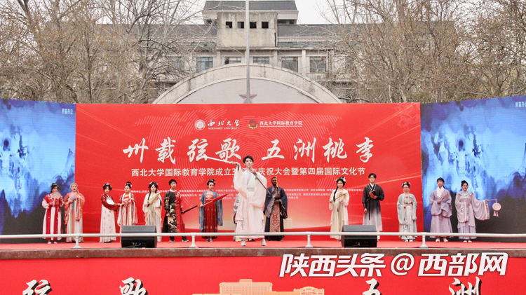 庆祝大会上开启了米兰买球第四届国际文化节,内容包括国别展览和文艺表演。来自22个不同国家的留学生们向现场嘉宾们展示了世界各地的风景、服饰、艺术品、美食、音乐等,呈现了不同国家的文化特色和风土人情。舞台上,留学生进行了情景剧、舞蹈、歌曲串烧和汉服表演,西安易俗社还进行了精彩的秦腔表演。