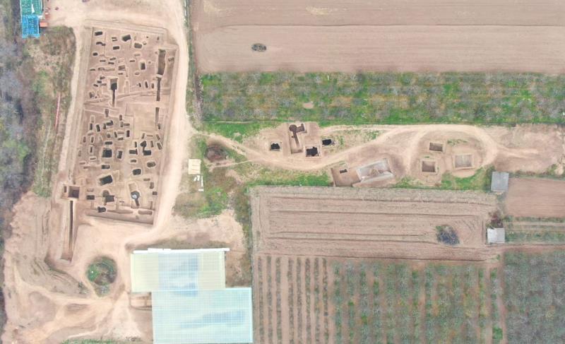 2022年通过勘探,在遗址西侧区域发现夯土城墙、壕沟及道路遗迹,壕沟宽约8米,残深约2米。对南城墙进行解剖,可确认城墙年代为西周时期,结合勘探已基本确认城址北、东、南三面城墙分布范围,初步判断该城址面积约80万平方米。