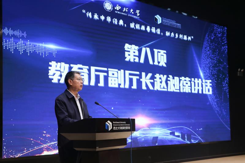 陕西省教育厅副厅长赵昶葆在讲话中指出,此项目把学校、企业的力量凝聚起来,把推普、诵读、支教紧密结合起来,是在推动“国家通用语言文字推广普及与乡村振兴”融合发展方面做出的有意义、有价值的探索和创新。希望校企三方进一步加强合作,形成可借鉴、可推广、有特色、有成效、美誉度高、标识度强的典型案例和特色模式,促进普通话和中华经典文化在乡村浸润传播。