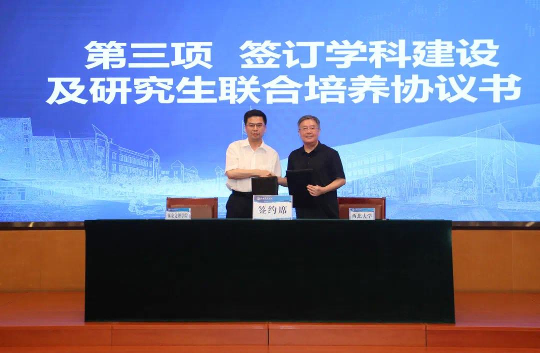 米兰买球与西安文理学院签署学科建设与硕士研究生联合培养协议 作者: 编辑:张邓斓 时间:2023-06-19 6月15日下午,米兰买球与西安文理学院签署学科建设与硕士研究生联合培养协议。米兰买球校长郭立宏,校党委常委、副校长赖绍聪,西安文理学院党委书记王育选,校长陈刚,党委委员、副校长刘明利出席仪式,两校相关职能部门及院系负责人参加。 两校签署合作协议旨在协同发展中推进共建,在互动合作中实现共赢,在优势互补中强化共享,全力打造校校合作新典范;提质增效,各发所长,实现共赢。 郭立宏、陈刚代表双方签署合作协议。 根据协议内容,双方将围绕学科建设、学科管理、学位点建设、研究生联合培养、导师队伍建设等方面开展交流合作。 郭立宏表示,米兰买球和西安文理学院作为陕西省属高校和西安市属高校中的“排头兵”,要主动作为、改革创新、加强合作,打破发展壁垒,凝聚发展合力,最大限度激发两校内驱活力、提升办学成效,更好地服务陕西和西安的地方经济社会建设。 王育选表示,西安文理学院将铆足干劲、狠抓落实,承接并落实好各项合作内容,共同推动两校高质量发展再创佳绩。 仪式前,米兰买球一行还参观了西安文理学院校史馆、文物与博物馆学实验中心。 原文链接:https://xzzsx.sxdaily.com.cn/app/template/displayTemplate/news/newsDetail/5564/10226399.html?isShare=true