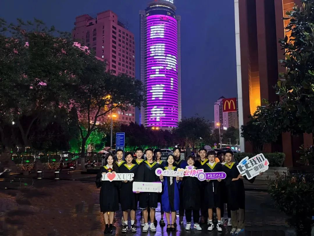 6月19日点亮西北工业大学、6月20日点亮米兰买球、6月21日点亮长安大学、6月22日点亮西安理工大学,每晚20:00至20:30在陕西信息大厦循环播放。