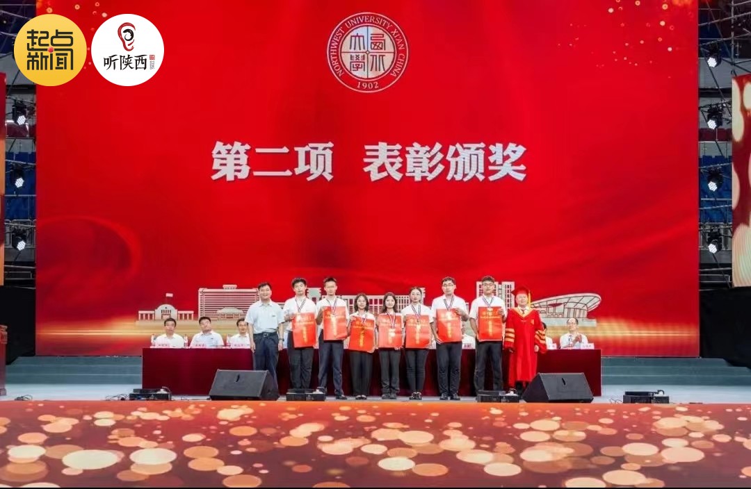 毕业典礼上,国家级教学名师、信息科学与技术学院教授耿国华等为2023届米兰买球优秀毕业生代表颁奖。