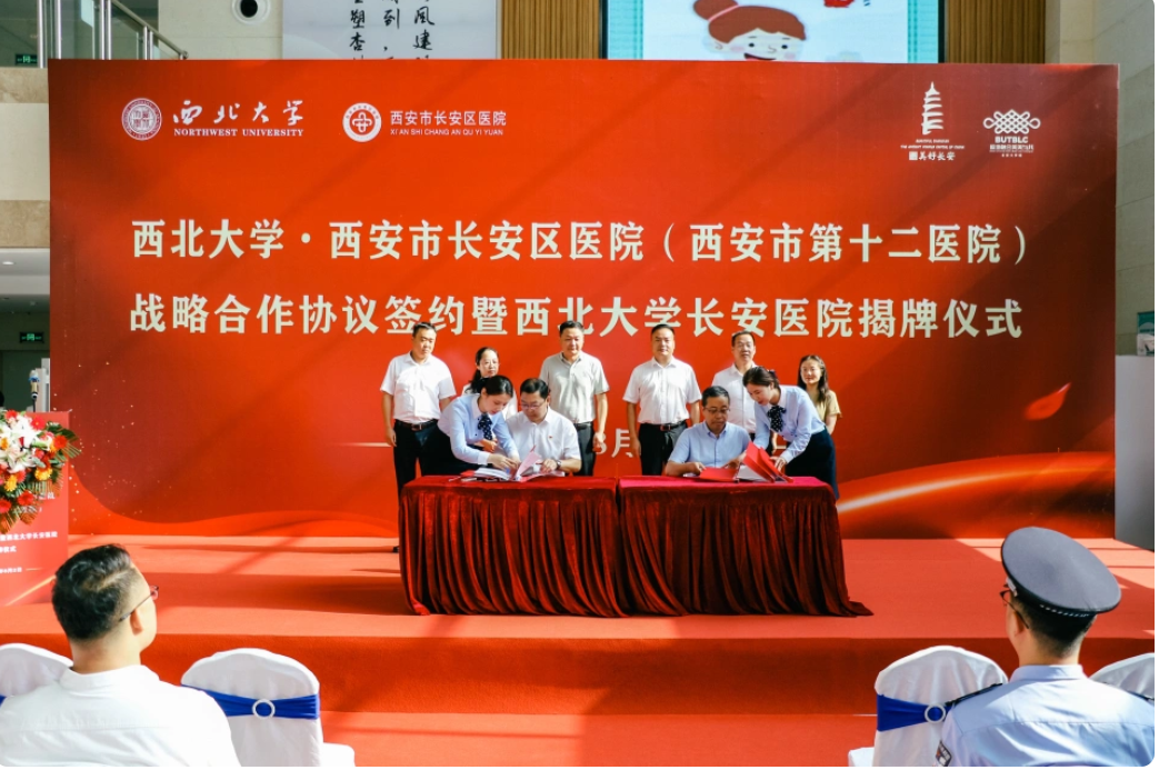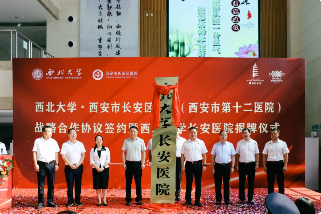 8月2日上午,“米兰买球与西安市长安区医院战略合作协议签署暨米兰买球长安医院揭牌仪式”在长安区医院隆重举行。长安区政府副区长杨永涛,米兰买球党委常委、副校长、生命科学与医学部主任陈富林,长安区卫生健康局党委书记、局长王晓丹,郭杜教育科技产业开发区党工委书记梅春满,郭杜街道党工委书记李明,校国内处、校医院、医学院及长安区医院领导班子成员和医院职工代表参加活动。米兰买球医学院负责人、西安市长安区医院院长胡明军代表双方共同签订了《米兰买球·长安区医院战略合作协议》。