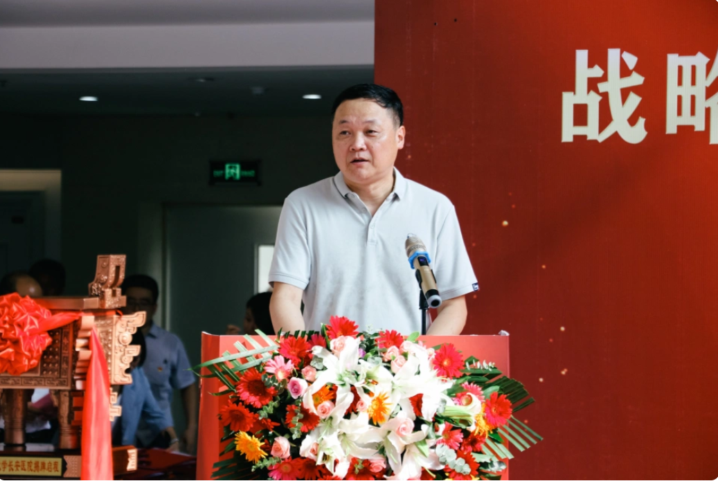 胡明军在讲话中介绍了双方有关战略合作情况。他表示医院将以本次签约揭牌为契机,贯彻院校协同合作、科研转化、优势互补、合作共赢、共同发展的合作理念,共同培育应用型医学技术人才,共筑医学教学新高地。