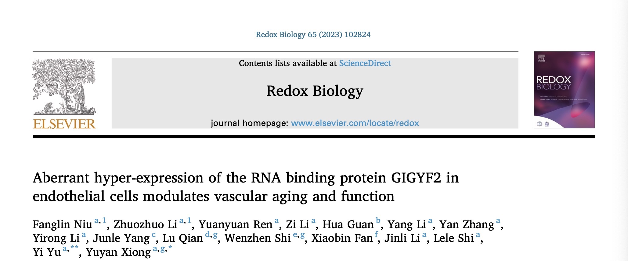近日,米兰买球生命科学与医学部熊裕焱教授团队在GIGYF2在血管内皮细胞衰老中的生物功能及其调控机制的研究中取得了新进展,研究结果发表在Redox Biology,题为“Aberrant hyper-expression of the RNA binding protein GIGYF2 in endothelial cells modulates vascular aging and function”。