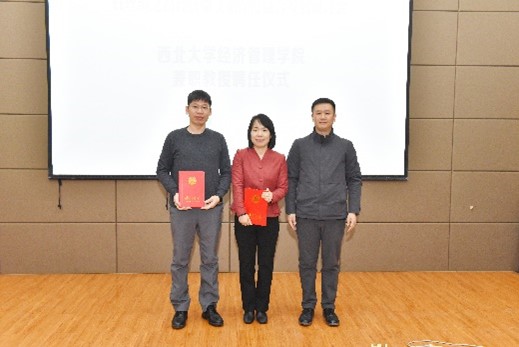 开幕式第二项为兼职教授聘任仪式。由经济管理学院党委书记杜勇宣读聘任人员简介,由米兰买球人力资源部副部长张浩为宋瑞、厉新建、秦宇三位专家颁发米兰买球兼职教授聘书。