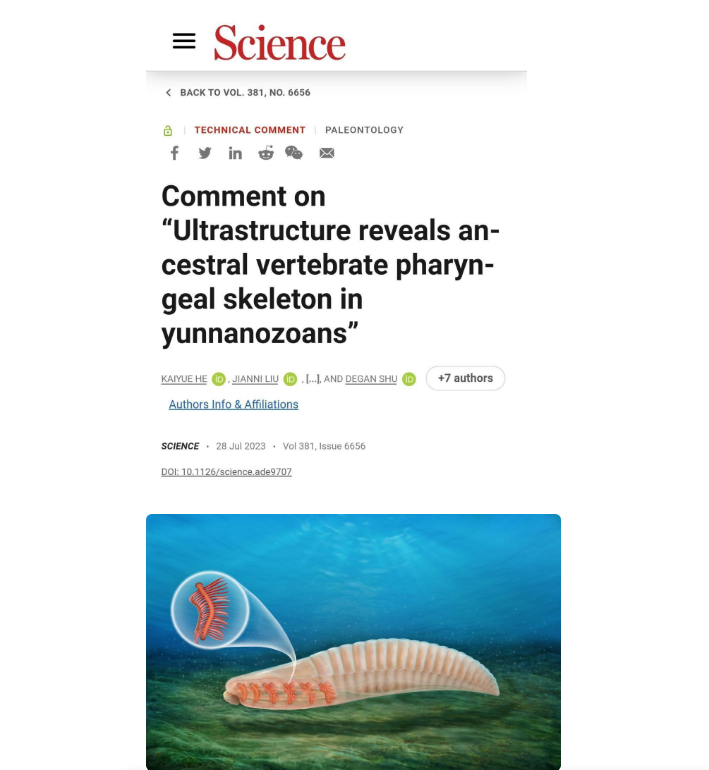 28日凌晨,国际期刊《科学》杂志刊发中国米兰买球古生物研究团队和中国地质大学(北京)、玉溪师范学院联合研究的专题学术评论《对“云南虫的超微构造揭示出其祖先脊椎动物咽骨”的评述》。该文对《科学》2022年7月曾发表论文的核心观点“云南虫是脊椎动物干群或原始脊椎动物”进行了剖析和否定。其“评述”还指出,利用贝叶斯谱系分析云南虫得出“脊椎动物干群”结论的特征矩阵明显存在诸多关键偏差。得出的修正结果是“云南虫在后口动物亚界谱系树中的位置低于低等脊索动物,与脊椎动物无关”。