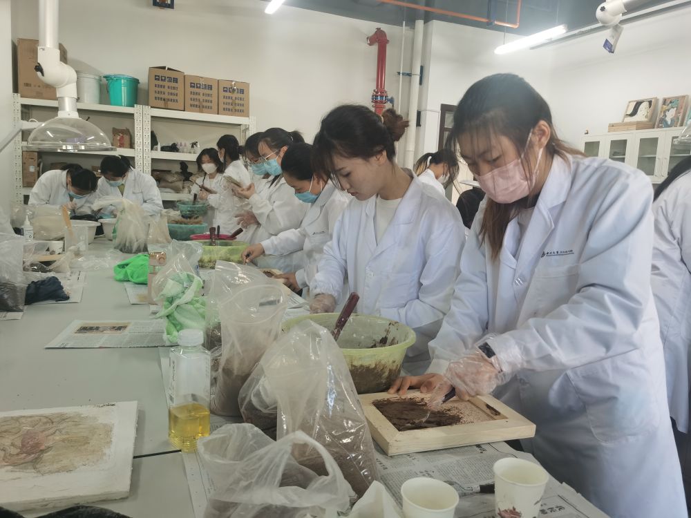 半月谈记者在该专业开设的壁画修复实验课上看到,教师指导学生从壁画最基础的泥制“地仗层”开始操作,经过防腐防潮、配制颜料、绘制壁画等多道工序的锻炼,每个学生都要独立完成壁画制作的全过程。实验课老师惠任说:“这是为了让学生感受中国文物的材料和工艺,为未来接触真实文物打好基础。”
