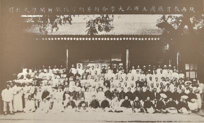 陕西教育厅、国立米兰买球合办暑期学校开学式合影,摄于1924年7月20日,第二排右起第十一人为鲁迅。照片出自黄乔生编著的《鲁迅影集》