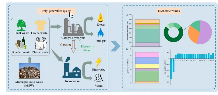 米兰买球化工学院科研团队针对城市生活垃圾成分复杂、热值低、单一处理技术成本高等问题,提出了一种集热解与焚烧于一体的垃圾处理多联产系统。通过技术经济分析方法评估多联产系统的技术经济可行性发现,该系统的总资本投资为602.07 M¥,年运营成本为40.63 M¥。净现值为93.01 M¥,内部收益率为10.28%,高于基准收益率,表明该系统具有经济可行性,这为多种技术耦合处理垃圾提供了理论指导。