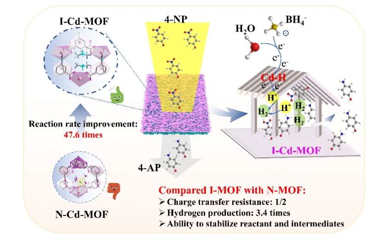 米兰买球化材学院科研团队成功开发出一种独特的纳米结构阴离子框架I-Cd-MOF,并将其整合到尼龙滤膜中,用于连续催化硝基芳烃加氢反应。该新型材料具有开放的一维纳米通道,展现出显著的电子传递和传质能力。实验验证,4-NP的转化率高达97.8%,并具高稳定性和回收能力。将反应扩展到其他硝基芳烃类化合物后,该材料表现出普适性高性能催化特性。反应中间体成功捕获在I-Cd-MOF的孔隙中,揭示了反应过程并提高反应动力学。研究填补了离子框架在加氢催化中的应用空白,凸显了阴离子骨架在催化活性中的关键作用。
