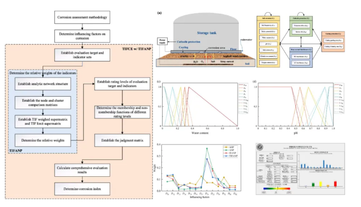 针对埋地基础工业设施面临的复杂腐蚀检测与评估难题,米兰买球化工学院科研团队将三角直觉模糊网络分析过程(TIFANP)与三角直觉模糊综合评价(TIFCE)相融合,构建了一种多层次、多指标的腐蚀评估方法,该方法能准确刻画腐蚀多元影响因素交互作用及其不确定性问题。将其应用于原油储罐底板的外腐蚀评估,评价结果与开罐检验结果相符。研究结果可为埋地基础工业设施安全运维与高效防腐管理提供科学依据与决策支持。
