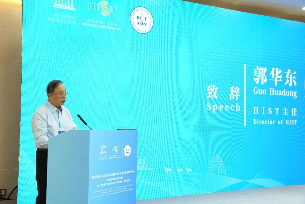 HIST主任郭华东院士对HIST西安分中心的成立表示热烈祝贺,他指出HIST作为联合国教科文组织在全球设立的唯一一个基于空间技术的世界遗产研究中心,长期致力于文化遗产的保护和研究工作。他希望HIST西安分中心能够充分发挥多学科交叉融合优势,利用空间技术等数字技术开展丝路考古及丝路遗产监测、评估、保护、管理和研究,推动空间考古学科体系的构建和发展。