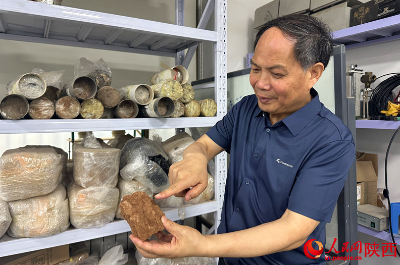王家鼎为记者展示采集回的土样。人民网记者 李志强摄