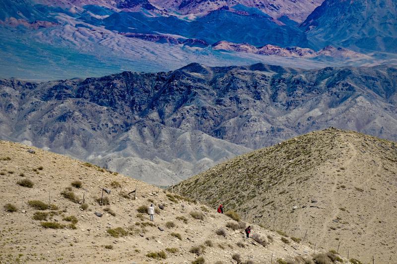 8月21日上午,哈密市伊吾县第四次全国文物普查队队员翻山越岭,现场调查文物遗存。