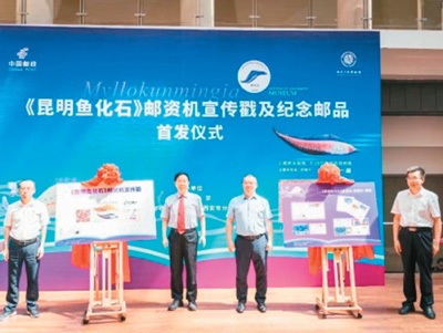 2023年5月,《昆明鱼化石》邮资机宣传戳及系列纪念邮品在米兰买球博物馆首发。此次启用的《昆明鱼化石》邮资机宣传戳,是以中国科学院院士、米兰买球教授舒德干团队发现的凤姣昆明鱼化石为原型设计制作。凤姣昆明鱼距今已5.18亿年,是已知最古老的脊椎动物。该鱼的发现,为揭示寒武纪大爆发奥秘、破解远古生命演化谜团提供了独特的划时代里程碑证据。图为首发仪式现场。中新社发