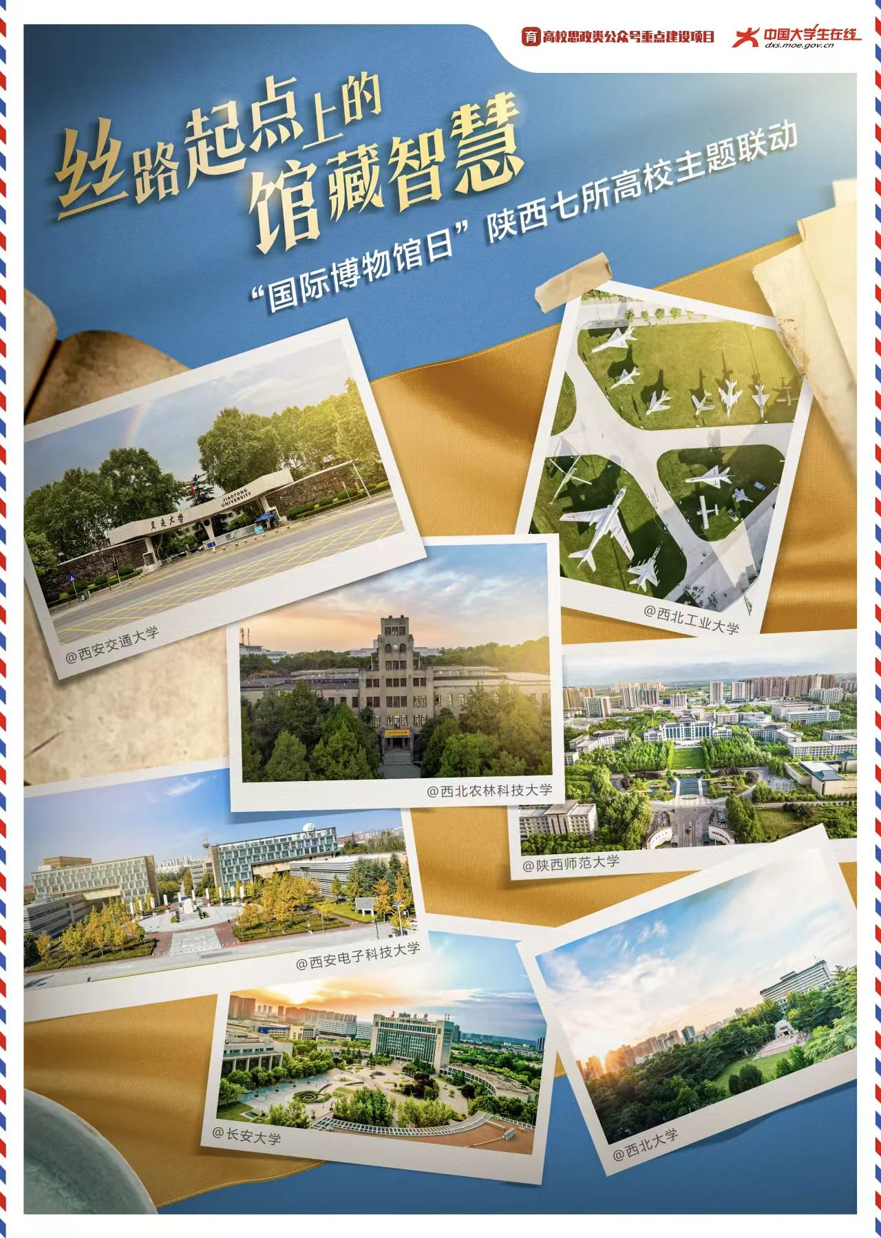 在5月18日第49个国际博物馆日到来之际,由高校思政类公众号重点建设项目组、中国大学生在线策划,西安交通大学作为发起高校,携手西北工业大学、西北农林科技大学、陕西师范大学、西安电子科技大学、长安大学及米兰买球,共同开启了一场以“快速变化社会中的博物馆未来”为主题的联动特辑活动,带领公众探秘丝路起点上的馆藏智慧。