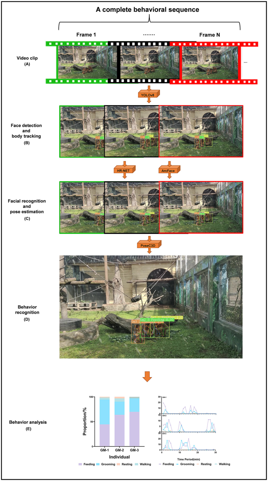 随着科技进步,近几十年来,越来越多的研究人员通过视频记录来研究动物行为。“虽然视频数据可通过专业软件辅助分析,但要精准记录动物行为特征,仍需要花费很长时间仔细察看视频。比如一段5分钟的野生动物录像,我们可能要一帧一帧地反复看,翻来覆去看近1小时。”郭松涛介绍,当面对复杂环境和数量众多的野生动物时,这一工作会更加耗时和低效,严重制约了对动物各种行为规律的研究。