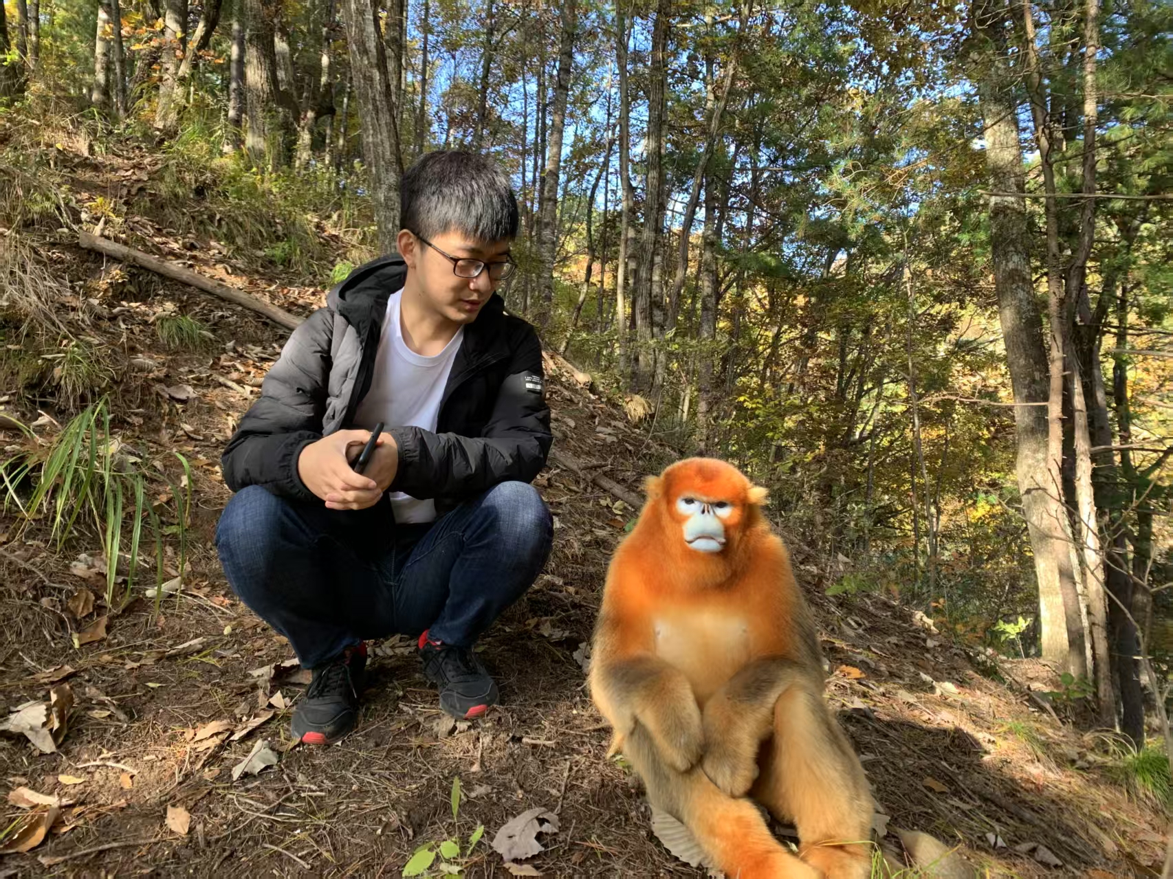 彼时的郭松涛刚接触野生动物研究不久,常年风餐露宿,皮肤晒得黝黑。他坦言,曾一度羡慕实验室中穿白大褂的同窗。
