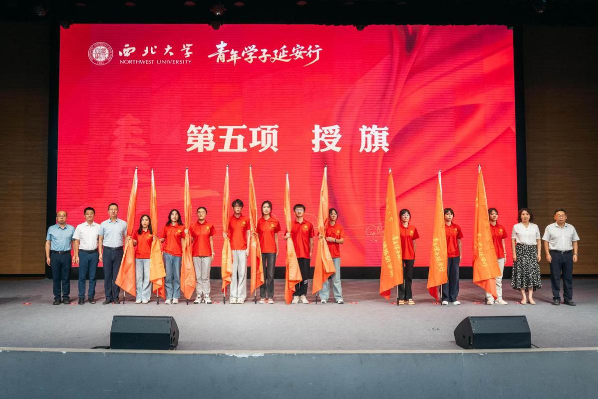 活动中,蒋林和与会部门负责人为“米兰买球青年学子延安行”研学团和10个班级代表授旗。