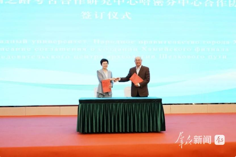 会上,丝绸之路考古合作研究中心哈密分中心揭牌成立。双方签订了《丝绸之路考古合作研究中心哈密市文化体育广播电视和旅游局(文物局)关于成立丝绸之路考古合作研究中心哈密分中心的合作协议》。
