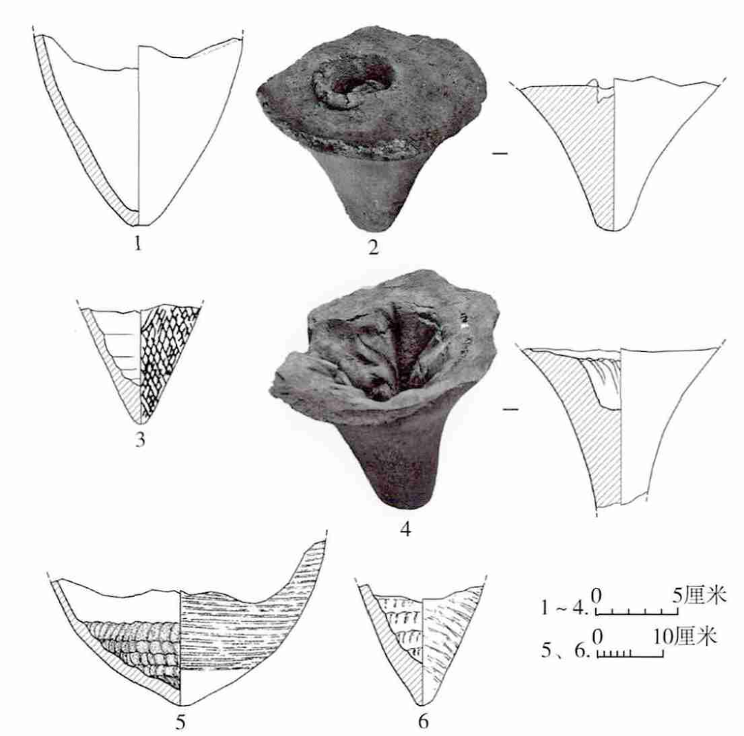 (1.南寨子M4∶2 2.鱼化寨H135∶4 3.案板CNDH30∶60 4.鱼化寨H15∶3 5.五庄果墚CF1∶20 6.固镇T105③a∶4)