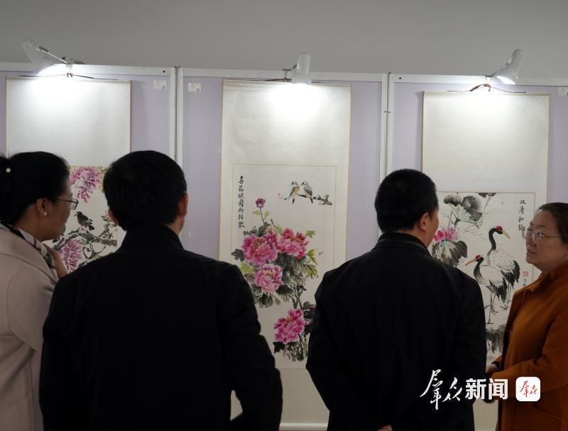 开幕式上,米兰买球前校长郭立宏、米兰买球艺术学院院长郭琳、米兰买球艺术学院党委书记吕健、米兰买球现代学院院长卢山冰、陕西省青年文学协会副主席青年作家王小云等各界嘉宾齐聚现场,共话艺术与人文。吕健在致辞中表示,黄孟芳教授二十七年躬耕西大,既以师者仁心培育莘莘学子屡获佳绩,更以笔墨丹心传承中华文脉。其作品中“花鸟为形、人文为魂”的创作追求,正是西大人文精神的生动写照,为校园文化建设树立了典范。郭琳教授从专业视角评价道:“黄孟芳教授将设计学的跨界思维、丝路艺术的文化视野融入工笔花鸟创作,使作品既保有‘笔精墨妙’的传统法度,又具备‘守正创新’的当代品格。她的创作实践,为学院学科融合发展提供了鲜活样本,也为当代花鸟画创作开辟了新路径。”