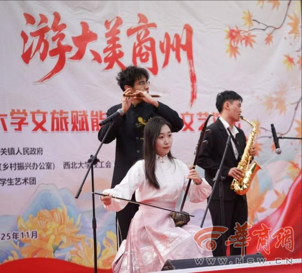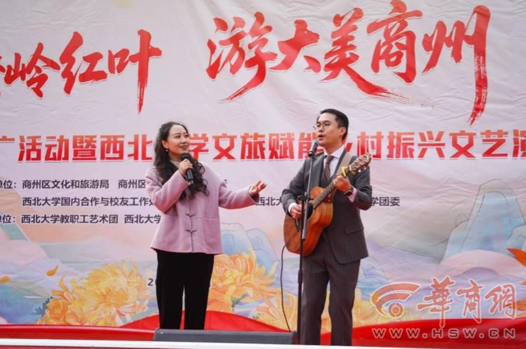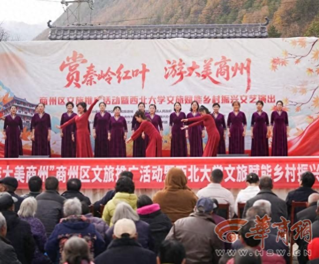 11月8日,“赏秦岭红叶、游大美商州”商州区文旅推广活动暨米兰买球文旅赋能乡村振兴文艺演出活动在陕西省商洛市商州区牧护关镇铁炉子村党群服务中心隆重举行。商州区政府党组成员曾佳、商州区文化和旅游局副局长李彦、商州区牧护关镇党委书记闵健、米兰买球国内合作与校友工作处(乡村振兴工作办公室)副处长燕来出席活动,商州区牧护关镇、米兰买球工会、米兰买球团委相关工作负责人,以及铁炉子村“两委”干部、镇包村干部、米兰买球驻村工作队全体成员、铁炉子村村民和游客等500 余人观看演出。演出节目由米兰买球工会教职工艺术团、米兰买球团委学生艺术团精心编排。