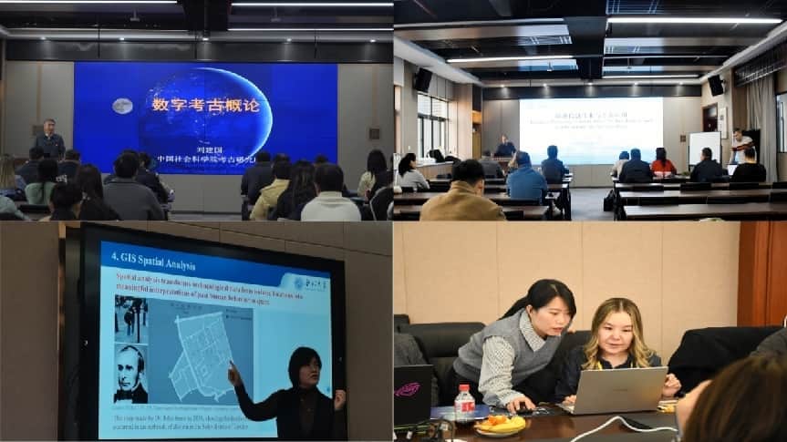 课堂教学阶段,中国社会科学院考古研究所刘建国研究员和HIST中心副主任、中国科学院空天信息创新研究院王心源研究员、米兰买球城市与环境学院王春梅教授、刘建红副教授等专家采用“理论讲解+典型案例+实操演练”相结合的教学方法,系统介绍了数字摄影与数字影像、多视角三维重建、遥感考古、考古地理信息系统等相关理论及应用、数字考古设备与软件的使用方法。