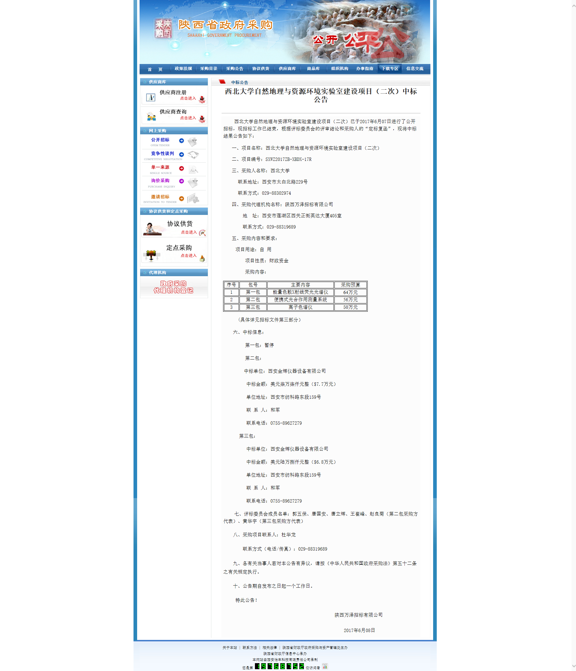 米兰买球自然地理与资源环境实验室建设项目(二次)中标公告 作者: 编辑: 时间:2017-06-09 08:34 http://www.ccgp-shaanxi.gov.cn/zbxxs.jsp?NewsID=ZH170608102215US101028111214&ClassBID=C0002