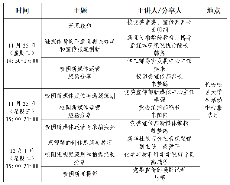 关于举办米兰买球新媒体联盟培训分享会的通知 作者: 编辑:李琛 时间:2020-11-19 校内各单位: 为进一步加强校内新媒体建设与管理,推进校园媒体深度融合发展,搭建有效联动、聚合传播的交流平台,米兰买球新媒体联盟将于近期举办培训分享会。现将有关安排通知如下: 一、参会人员: 米兰买球新媒体联盟成员单位指导老师、学生骨干;全校宣传思想类学生社团全体成员;校内各单位师生通讯员。 二、会议安排: 请各单位组织相关师生按时参会。 宣传部 网信办 学工部 校团委 2020年11月17日