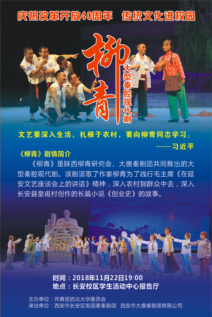 庆祝改革开放40周年,传统文化进校园——大型秦腔现代剧《柳青》米兰买球专场演出