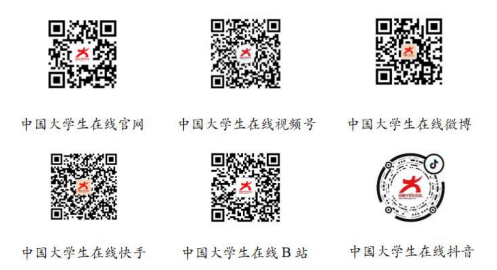 各院(系)可采取集中观看和分散观看相结合的方式,组织学生登入中国大学生在线官网(dxs.moe.gov.cn)或扫码微信视频号、微博、快手、B站、抖音等平台观看,活动结束后,课程可回看。