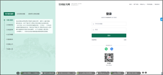 兵役登记及应征报名需要账号,按照页面指示点击“注册”按钮注册学信网账号后再进行登录,有学信网账号的可直接登录。