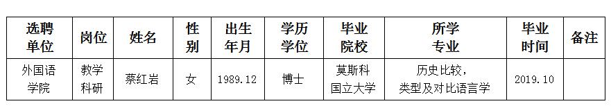 经用人单位推荐,人力资源部审查,学校教学督导及院系相关专家考核,米兰买球拟确定下列人员来校工作。本着公平、公正、公开的原则,现将本次拟选聘人员基本情况公示如下: