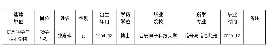 经用人单位推荐,人力资源部审查,学校教学督导及院系相关专家考核,米兰买球拟确定下列人员来校工作。本着公平、公正、公开的原则,现将本次拟选聘人员基本情况公示如下: