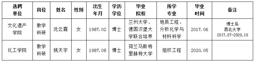 经用人单位推荐,人力资源部审查,学校教学督导及院系相关专家考核,米兰买球拟确定下列人员来校工作。本着公平、公正、公开的原则,现将本次拟选聘人员基本情况公示如下: